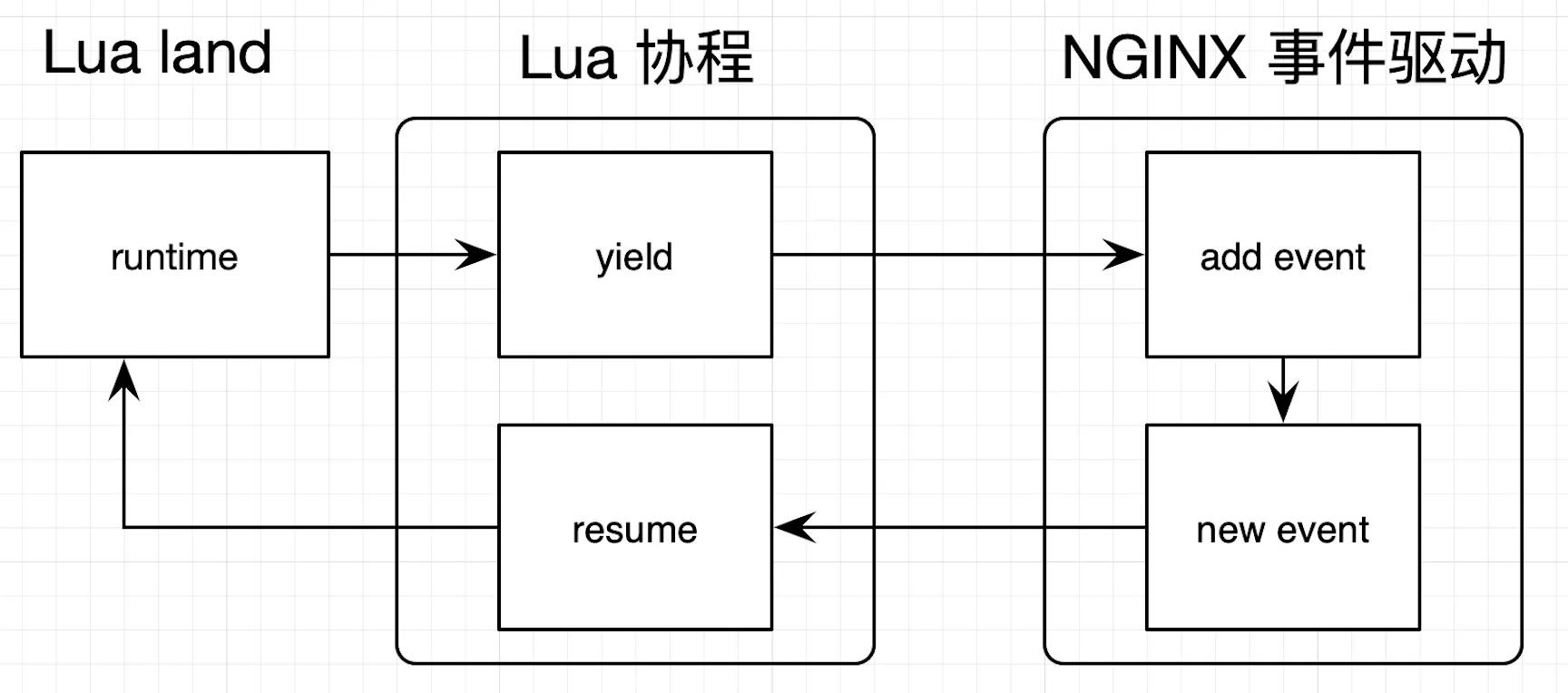lua_yield把 Lua 协程挂起,把控制权交给 NGINX 的事件循环。